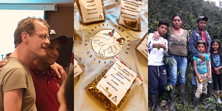 Eind februari reisde ik naar Colombia. Ik ging als jurylid proeven in de finale van winnende lokale koffieboeren van de competities “The Best Coffee of Antioquia” en “The Best Coffee of Cauca”. Het zijn jaarlijkse wedstrijden waar vooraanstaande koffiebranders uit alle werelddelen worden uitgenodigd. De deelnemende koffieboeren, de meesten hebben maar 0,5 tot 1,5 hectare koffie, wonen en werken in gebieden waar (tot voor kortgeleden nog) de Colombiaanse cocaïnemaffia de dienst uitmaakt. Zij speelt lokaal een prominente, manipulatieve rol naar de boeren om hen te pressen coca-planten te verbouwen.