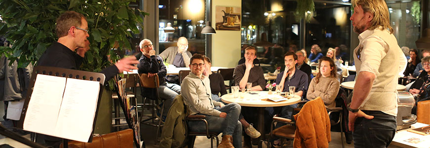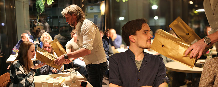 In een huiskamersetting deelde DirkJan Stip (Coffee Corazon) veel mooie en interessante koffiekennis. Van landen tot branden, van planten tot boeren. Van vroeger en van nu. Dirk Jan's charismatisch voorkomen en natuurlijke vertelwijze zorgen dat je van begin tot eind geboeid blijft luisteren en echt iets opsteekt.